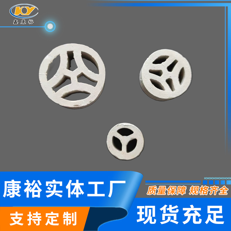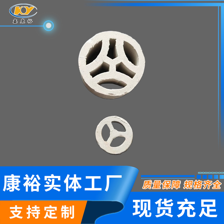 陶瓷三丫環(huán)因其優(yōu)異的工藝加工條件,如原料優(yōu)選,真空擠壓成型以及嚴(yán)格控制燒結(jié)工藝中的火焰氣氛,使得陶瓷三丫環(huán)具有瓷質(zhì)致密,色澤均勻,機(jī)械強(qiáng)度高,耐壓力沖擊,抗熱震性能好,耐搬運不破損的優(yōu)點。同時陶瓷三丫環(huán)結(jié)構(gòu)空間性能好,床層使用通氣量大、比表面大、氣液分布均勻、阻力小、壓降低、強(qiáng)度高、氣液傳質(zhì)性能比一般填料好。