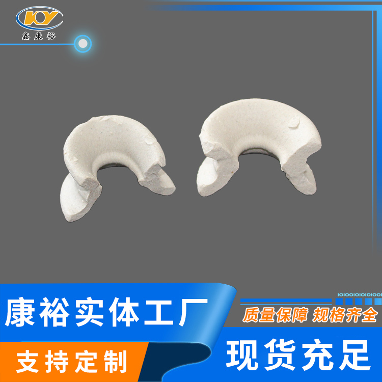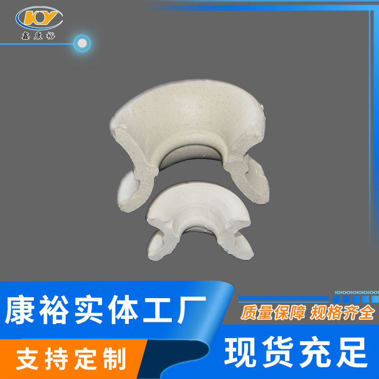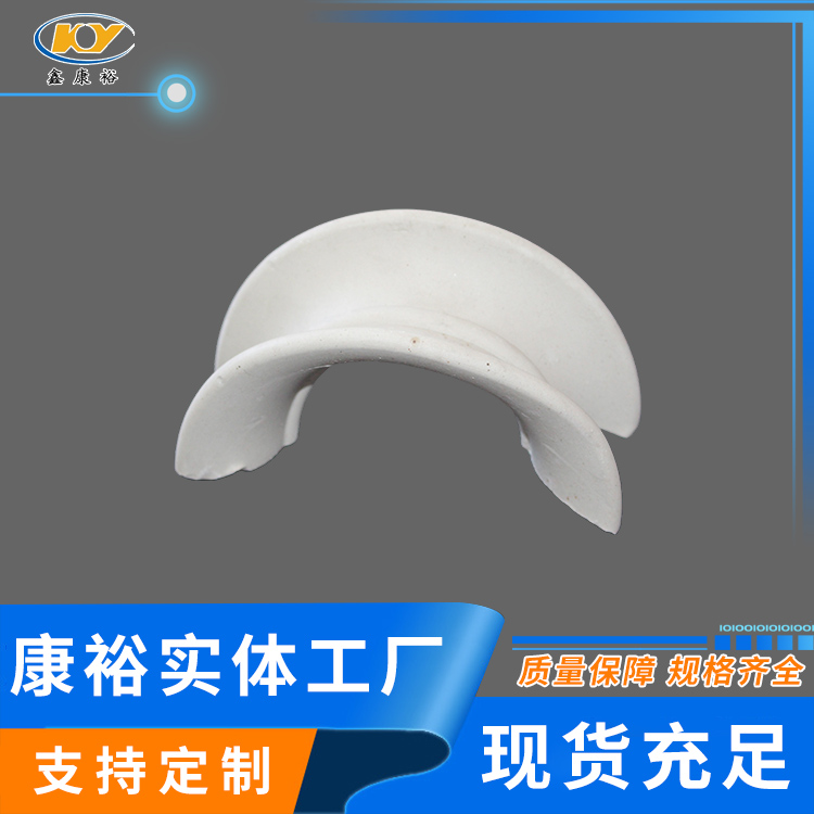 陶瓷矩鞍環(huán)屬于陶瓷填料一種型號(hào),陶瓷矩鞍環(huán)采用連續(xù)擠出的工藝進(jìn)行加工,與同種材質(zhì)的拉西環(huán)填料相比,陶瓷矩鞍環(huán)具有通量大、壓降低、效率高等優(yōu)點(diǎn)。矩鞍環(huán)填料床層具有較大的空隙率,床層內(nèi)多為圓弧形液體通道,減少了氣體通過(guò)床層的阻力,也使液體向下流動(dòng)時(shí)的徑向擴(kuò)散系數(shù)減小。